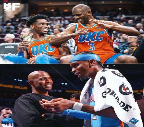 雷霆8连胜的赛后,亚历山大走到快船替补席,拥抱了cp4。