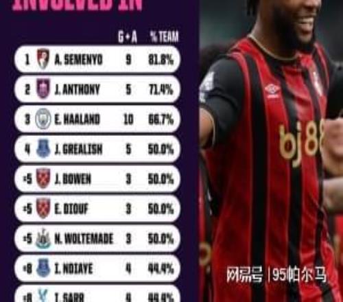 “进球和助攻上双是我的新目标之一。”这是塞梅尼奥新赛季开打之前的愿望,事实上他在本赛季12场各项赛事中已经制造了9粒进球,个人参与进球数占球队总进球数的81.8%,这个权重位居英超第一。